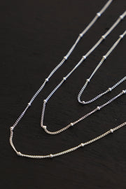 The Satellite Chain has been a staple in our line for many years and always tops the best seller list. The most delicate of chains, it layers well or can be worn as a simple accent to your everyday look. We adore the sweet details of this delicate chain.