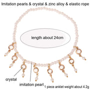Summer Pearl Beaded Anklets Boho Crystal Tassel Ankle Bracelets