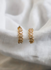 Our Tapered Baguette CZ Hoops are both edgy and glamorous. With off set baguette cut jewels they have just the right amount of sparkle. They are easy to dress up or dress down. We love pairing them with our Single CZ Ear Cuff, don't be afraid to double-stack these cuffs! Also available in Silver!