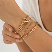 Thin Chain Layered Rhinestone Chain Bracelet Set