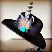 Turkey Feather & Turquoise Slab Hat Band + Choice of Hat 985z