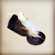- ****Please note, smaller feathers will be assorted and will match as closely to the photo as possible, but will not be identical. The primary piece of turquoise (color) and base leather piece will not change. These are natural feathers****