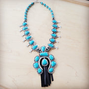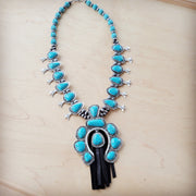 Turquoise Squash Blossom Necklace w/ Short Black Tassel 261y