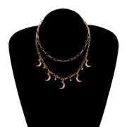 Vintage Jewelry Multi Moon Charm Layered Chain Necklace