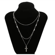 Vintage Multi Layer Chain Necklace Cross Pendant
