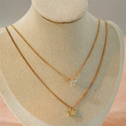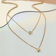 Vintage Multi Layer Zircon Double Crystal Cute Star Choker Chain Necklace