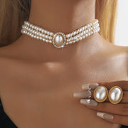 Vintage Oval Rhinestone Bridal Pearl Necklace Style Dress Wedding Set