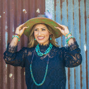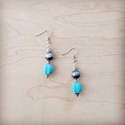 Western Blue Turquoise w/ Silver Bead Drop Earring 200w