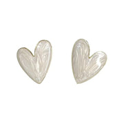 White Color Big Heart Stud Earrings for Women