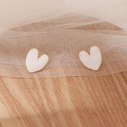 White Enamel Heart Love Stud Earrings