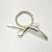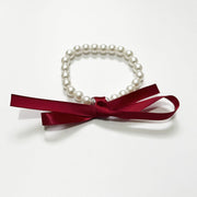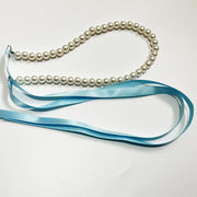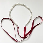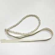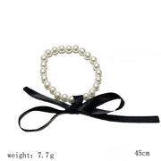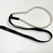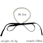 White Imitation Pearl Choker Necklace Women Long Black Ribbon