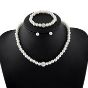 White Pearl Bridal Necklace Bracelet and Earrings Jewelry Sets