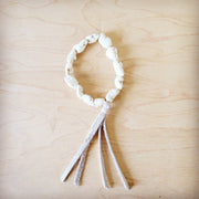 **White Turquoise Beaded Bracelet w/ Leather Tassel 810i
