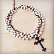 White Turquoise Beaded Collar Necklace w/ Cross Pendant 260z