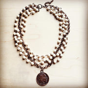 White Turquoise Collar-Length Necklace w/ Indian Buffalo Coin 227Y