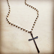 White Turquoise Long Beaded Necklace with Antique Copper Cross 255s