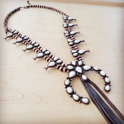 White Turquoise Squash Blossom Necklace w/ Dark Brown Tassel 261z