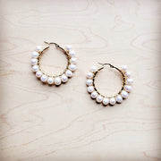 **Wire Wrapped Freshwater Pearl Beaded Hoop Earrings 221b