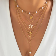 Women Butterfly Tassel Pendant Layered Set Necklace