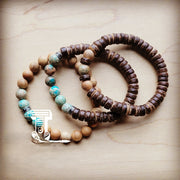 Wood and Imperial Jasper Stretch Bracelet Trio 808a