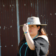 Elevate your style with our handcrafted Woven Regalite Stacked Stone Bracelet. Made with stunning turquoise stones, this boho-inspired bracelet adds a touch of western flair to any outfit. Expertly woven for a unique and textured look, making it a must-have accessory.