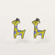 Yellow Enamel Animal Giraffe Deer Stud Earrings