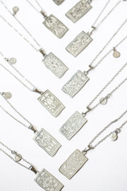 One of our most popular necklaces! This gorgeous piece features a double sided zodiac pendant- one featuring an emblem to represent each sign, and the back side featuring the constellation that correlates! You are basically getting 2 necklaces in one- having a completely different look on each side! Each necklace is 16 inches in length with an adjuster chain to make it. upto 18 inches. Each is made with solid stainless steel, so it completely hypoallergenic and completely tarnish proof too! (you can even get it wet!)