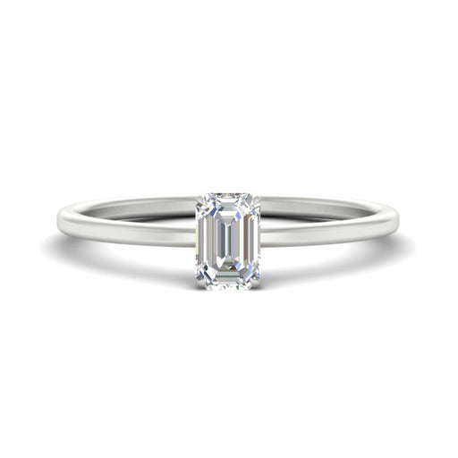 View full detailsThe Emerald Cut Thin Classic Solitaire Ring from Fascinating Diamonds features a center stone diamond in a classic four prong setting, elegantly pa...