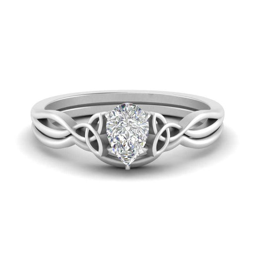 View full detailsCeltic knots embraces the shoulders of this romantic ring, while elegant twisted split shank adorns the band along with a prong set center stone of...