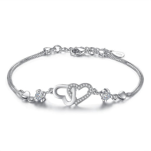 View full detailsThis I Love You Bracelet with Cubic Zirconia is perfect for showing your love and affection. The white gold plated bracelet has two joining hearts,...