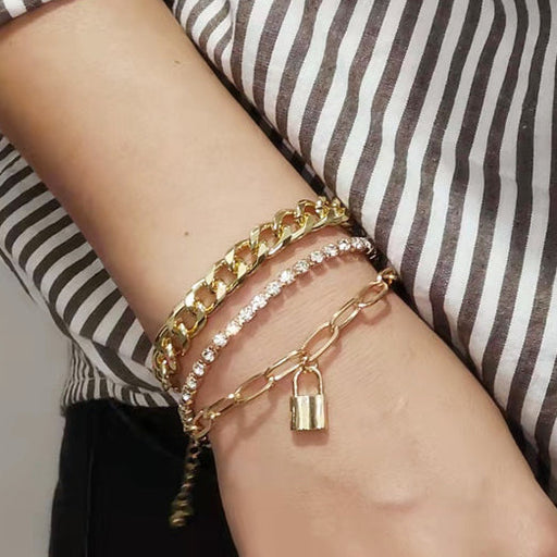 Women Crystal Chain Lock Charm Bracelet Set