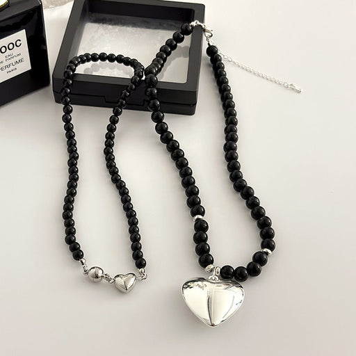Smooth Glass Pearl Peach Heart Necklaces
