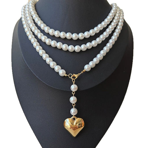 Bohemia Multilayer Long Pearl Chain Necklace Love Heart Pendant