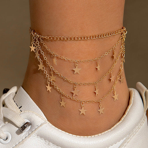 Double Layer Anklet Chain Star Tassel Chain Anklet Jewelry