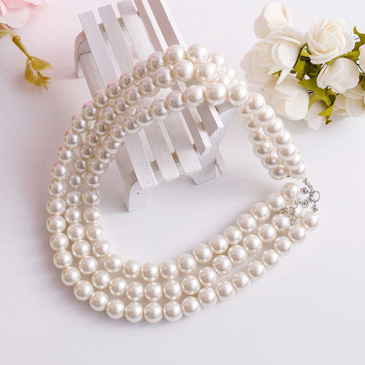White Pearl Layered Necklace Multi Strand Beaded Pearl Necklace