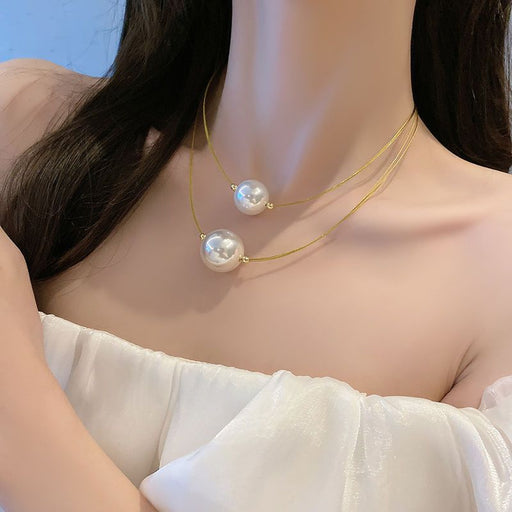 Double Layer Baroque Glass Pearl Pendant Necklace