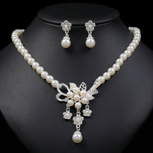 Rhinestone Pearl Wedding Jewelry Set for Bride Bridesmaid