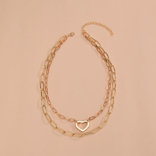 Punk Chunky Choker Double Heart Multi Layer Paper Clip Necklace
