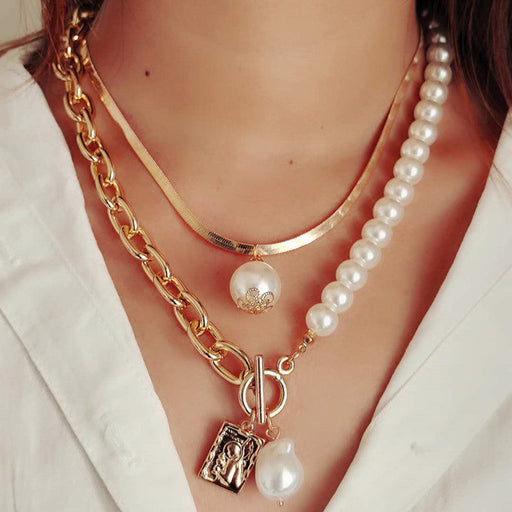 Punk Multi Chain Layered Pearl Necklace