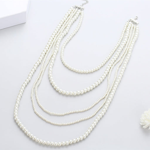 Layers Pearl Beaded Necklace Long Jewelry Women