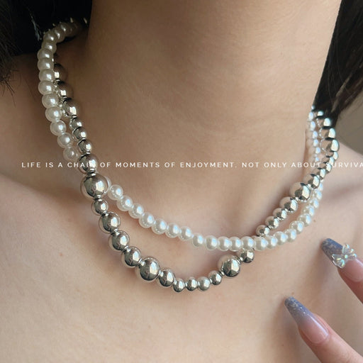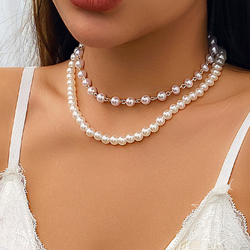 Imitation Pearl Wrapped Necklace Double Layer Magnetic Buckle Neck Chain Choker Necklace