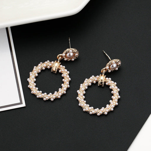 Vintage Round Pearl Pendant Earrings for Women