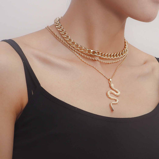 Vintage Cuban Chain Multi Layered Snake Pendant Necklace