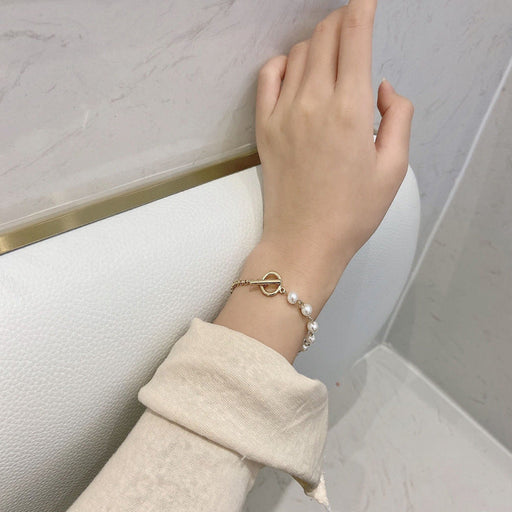 Imitation Pearl Beaded Bracelet Stretch Rhinestone Ball Vintage Bracelet