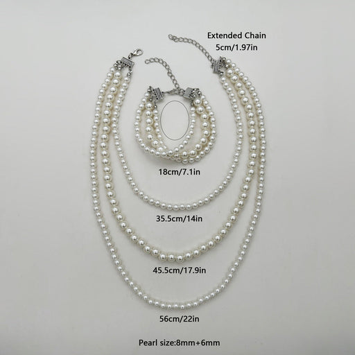 Exaggerated Multi-Layer Pearl Pendant Earring and Necklace Set
