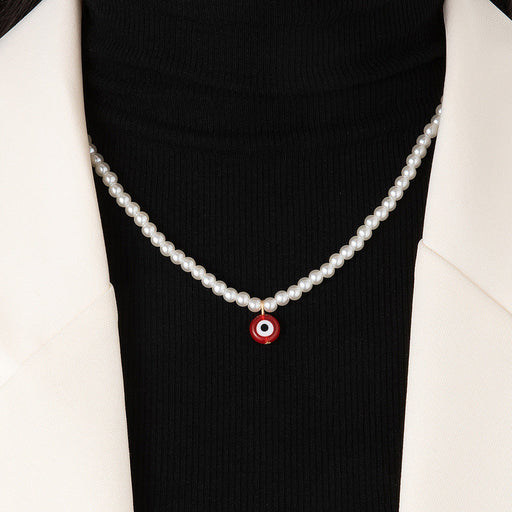 Blue Eyed Beads Pendant Women Pearl Necklace Simple Short Collar
