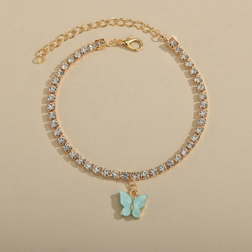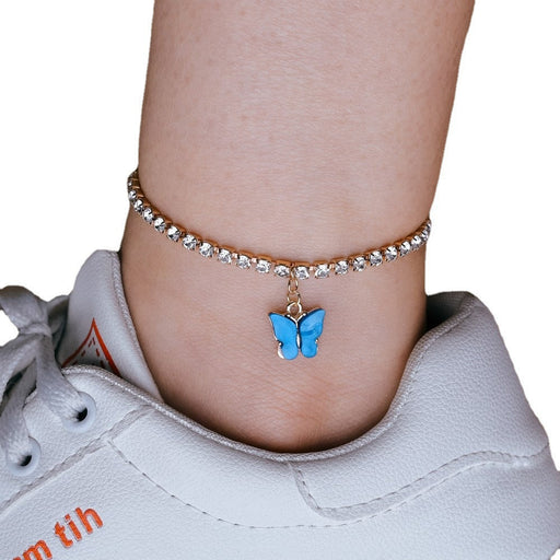Shiny Rhinestone Chain Butterfly Ankle Jewelry