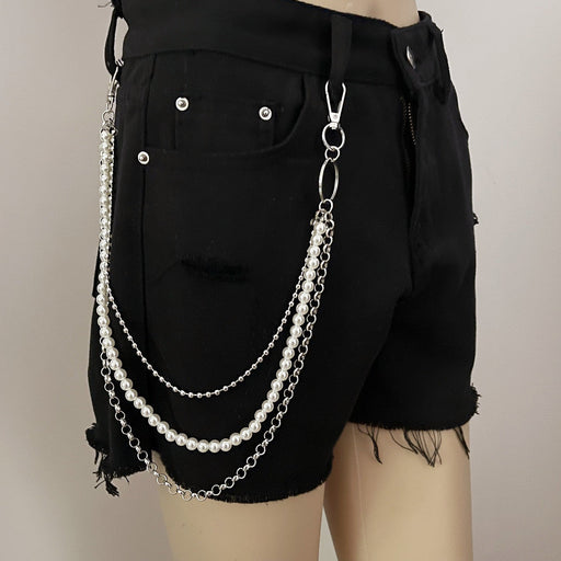 White Pearl Bead Exaggerated Metal Large Heart Pendant Sexy Women Waist Chain