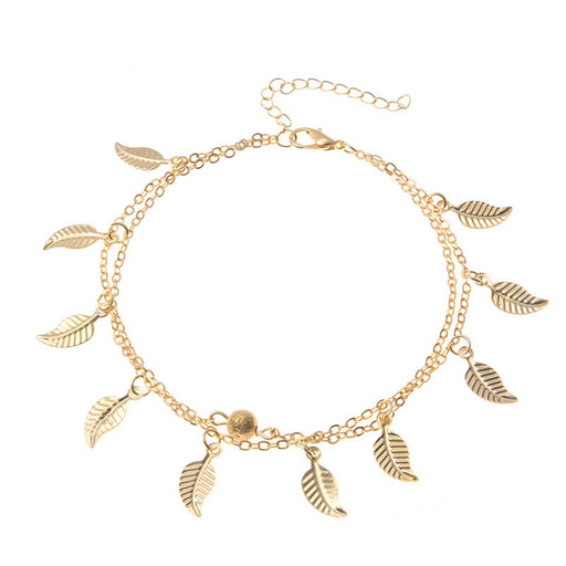 Beach Leaf Layered Tassel Foot Chain Anklets Jewelry