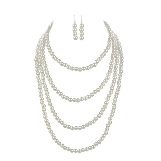 Pearl Necklace Earring Set Multilayer Strand Chain Faux Pearls Jewelry Set